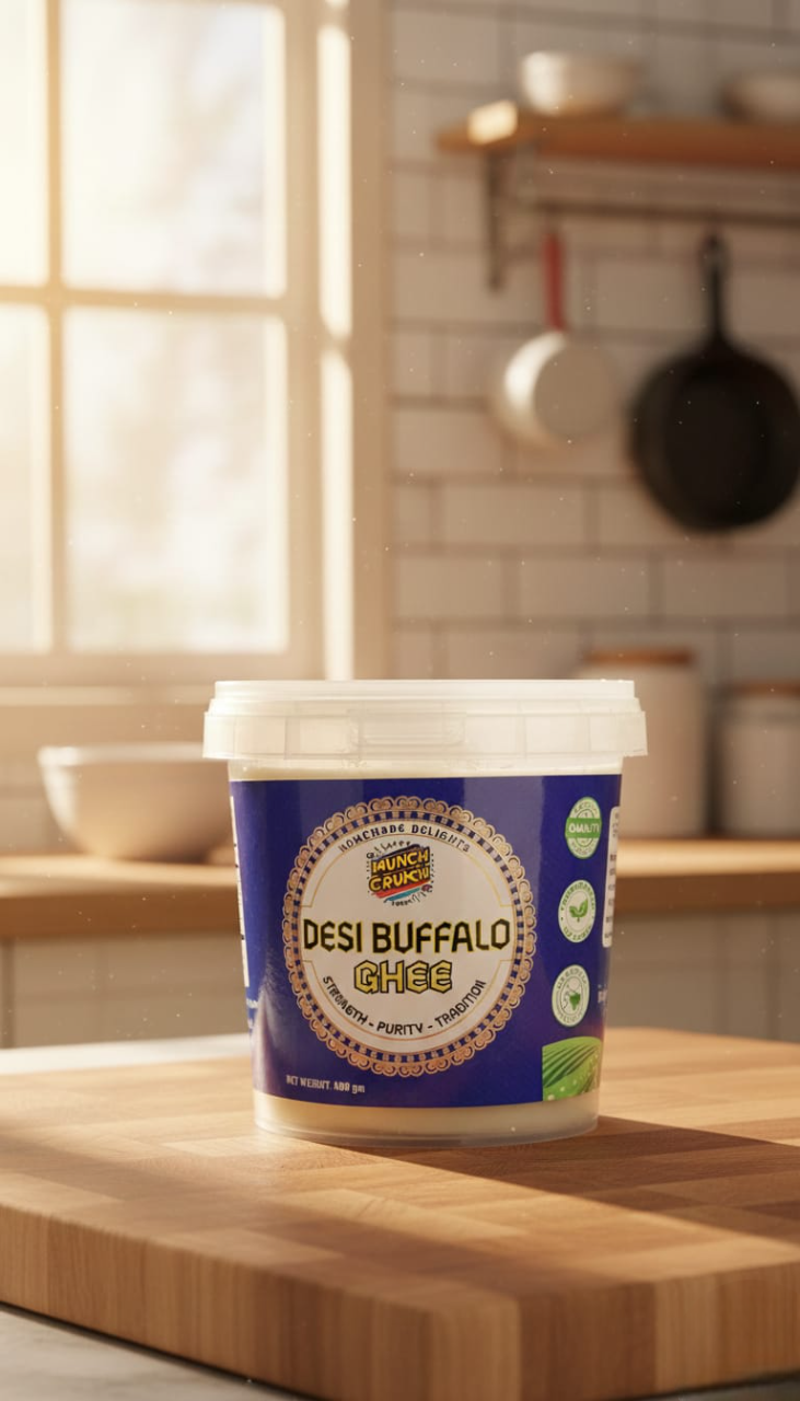 Our Desi Buffalo Ghee is crafted from pure, fresh buffalo milk and slow-cooked to perfection. Its rich aroma, thick texture, and natural healthy fats make it a perfect choice for cooking and daily nourishment. A spoonful adds purity, strength, and authentic desi goodness to every meal.